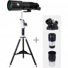 Специально для переноски и хранения оптической трубы в комплектацию включен алюминиевый кейс – он обеспечивает сохранность оптики и механики. Из оптических аксессуаров здесь есть окуляр Плёссла 20 мм, ED-линза Барлоу 2х и диагональное зеркало с диэлектрическим покрытием и коэффициентом отражения 99%.